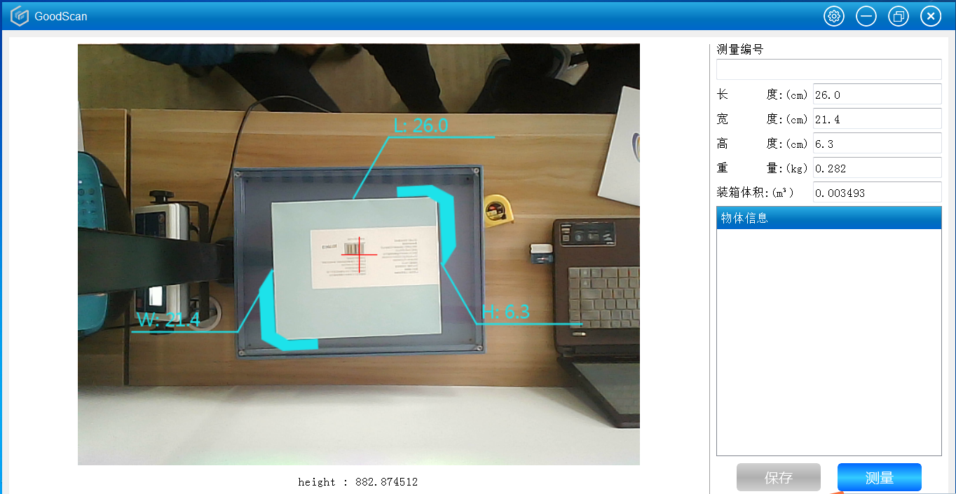 產品特點:即測即保存數據,可隨時導出數據,精確至任何時間;適用于中小件商品測量,規(guī)則/非規(guī)則,臺面任意擺放,且可以用在流水線上。