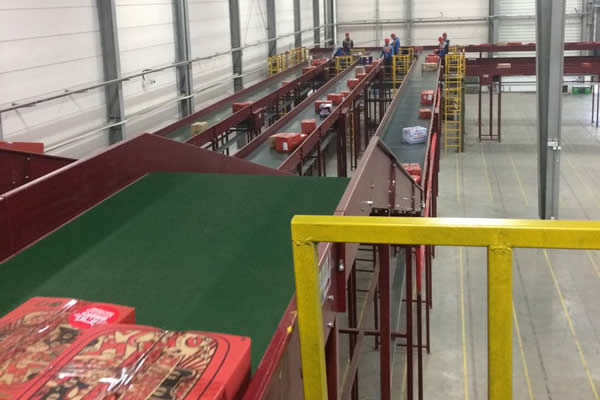 雙向出口交叉帶分揀機適合方形場地,在有線長度內布置更多的分揀道口;批量生產具備成本低和實施快的優(yōu)點。主線長度:20~10米。分揀道口數(shù)量:30~150個。分揀小車數(shù)量:160個。總用電功率:15~30KW。可分揀的產品的重量:最大40公斤可分揀的快遞包件最大尺寸:W500*L800MM生產周期:2~3個月。安裝調試周期:4~6周(不包括同客戶信息系統(tǒng)聯(lián)調)。推薦設備:全自動面單貼標機、電商立式開箱機