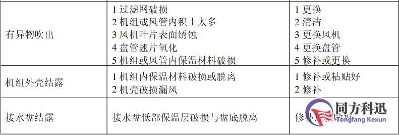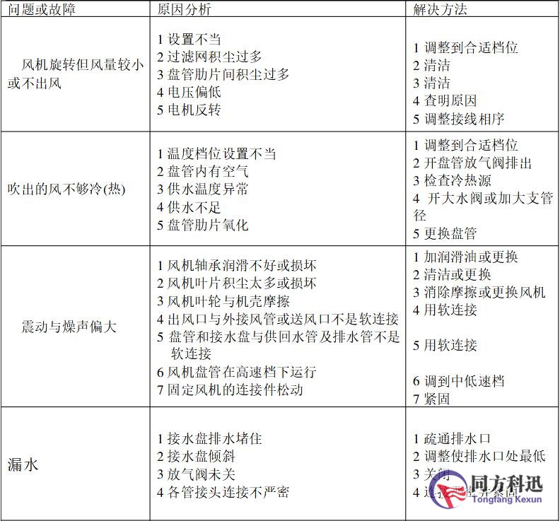 圖表1:風機盤管常見問題和故障的分析與解決方法: